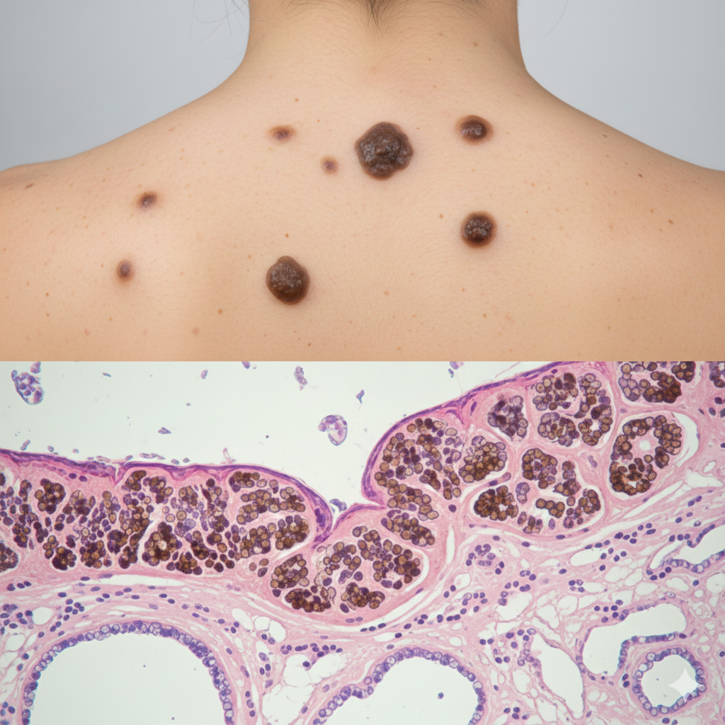 | 定義 | 皮膚に現れる色の濃いあざ(一般的に「ほくろ」) |